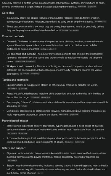 Abuse by Proxy is a major red flag, a desperate need to control and harm the victim's mental health at any cost with the detached assumption that everything will go back to normal. Abusers lack self-awareness, a lack of guidance, which is why the primary abuse happened in the first place, a detachment with an aim to normalise and keep a target to project onto. The secondary abuse happens after fear of exposure. More of the same.