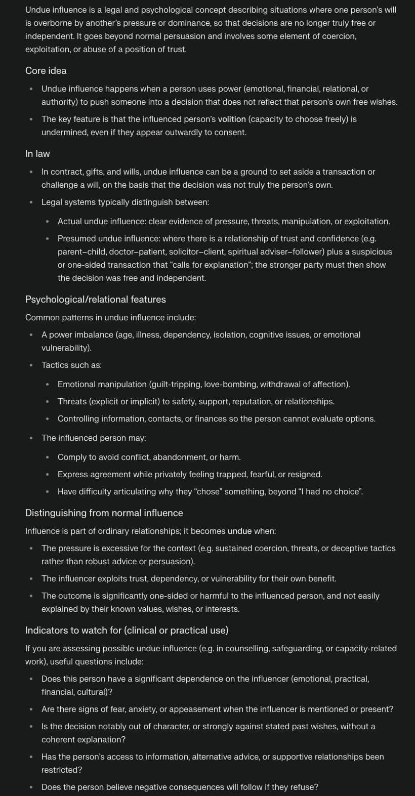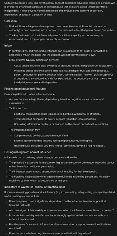 Undue Influence - Lack of mental capacity - Lack of Knowledge and Approval - Inheritance Act claims - Coercive Control - Psychological Violence