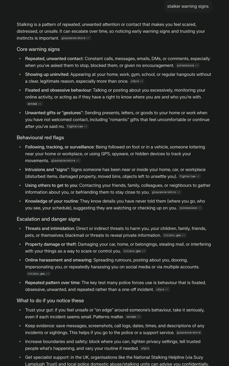 Collage of Policing - What are the dangers of female-perpetrated stalking